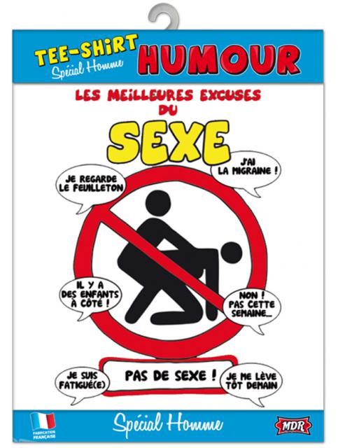 Ce T-shirt 100% coton sera parfait pour inspirer les meilleurs excuses de sexe, il ne reste plus qu'à choisir la plus crédible!